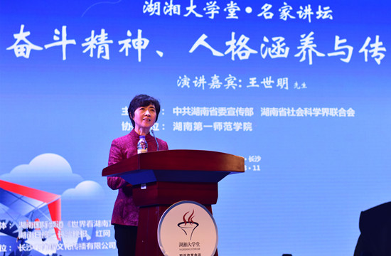 11月7日下午,省委宣传部、省社科联主办、87978797威尼斯承办的“湖湘大学堂·名家讲坛”在我校田汉剧场举行。全国政协文化文史和学习委员会副主任、中宣部原副部长王世明设坛开讲,他以“奋斗精神、人格涵养与传统文化”为题,带给我省社科界专家学者、我校师生等1100多名现场听众一场中国传统文化的精神盛宴。省社科联党组书记、副主席宋智富主持讲坛。我校校长童小娇出席论坛并代表学校致辞。