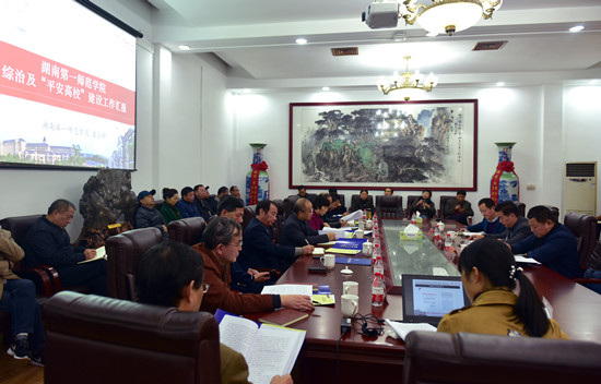 11月8日上午,以湖南工业大学保卫处处长李永清为组长的省高校综治工作和“平安高校”建设项目考评组一行3人来到我校,对我校2018年度综治及平安校园建设工作进行考评。全体校领导、各部门主要负责人参加了汇报会,校党委书记彭小奇主持汇报会。