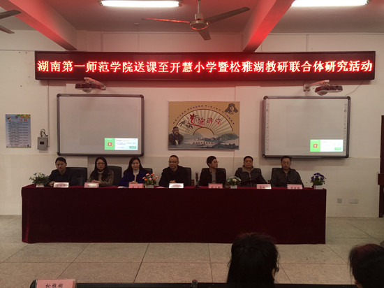 活动开始前,蒋蓉介绍了我校的办学特色以及在小学教师培养方面取得的成绩,强调了我校促进教育公平、努力服务地方基础教育的决心,并对正在开慧镇进行顶岗实习的16名学生提出了期望,希望同学们能够珍惜机会,认真思考,学有所获。陈晓代表长沙县教育局对我校送教团队表示热烈欢迎,并对我校为长沙县基础教育输送了大量人才表示感谢,同时也期望我校与开慧镇的校地合作能长期开展下去,不断提高开慧镇乃至长沙县的基础教育整体水平。