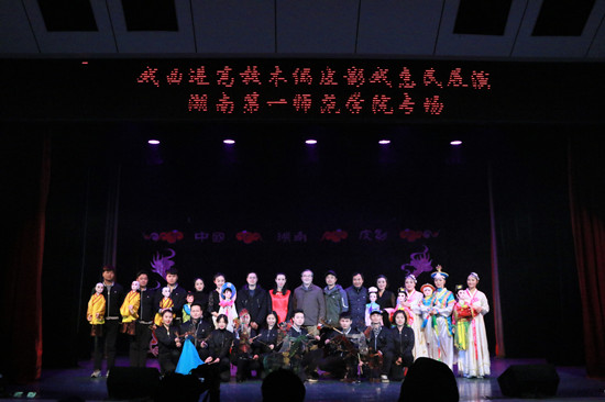 12月10日晚,由省委宣传部、省文化厅主办的“戏曲进校园”活动走进我校,湖南省木偶皮影艺术保护传承中心带来的皮影戏、木偶剧在东方红校区特立楼实验剧场精彩上演。副校长曹兴,现代教育技术与网络中心、校团委负责人及各学院师生代表共400余人观看了演出。