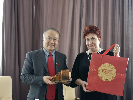 3月29日下午,我校代表团与乌里扬诺夫斯克国立师范大学校长塔玛拉﹒符拉特金娜及相关人员举行会谈,双方就校际合作、互派教师、互派交换生、开展学生夏令营、建立汉语言文化中心以及开办专业等项目进行了深入磋商。
