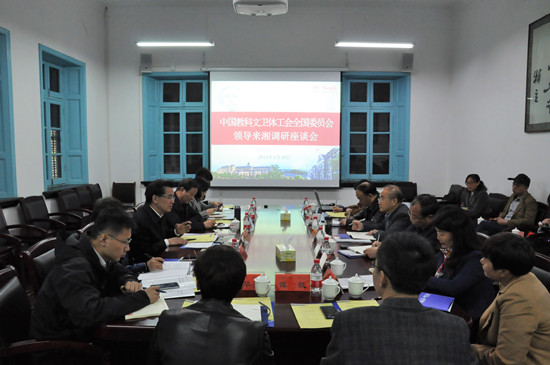 4月10日,中国教科文卫体工会全国委员会主席章国贤来我校调研。中国教科文卫体工会全国委员会调研处处长周晓慧、副调研员井立滨,湖南省教育工会主席高新明、副主席易丽鹏参加调研。我校党委书记彭小奇、副书记刘志敏、副校长刘鸿翔陪同调研。