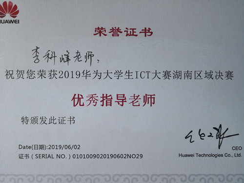 6月2号下午,华为大学生ICT大赛湖南赛颁奖仪式在长沙民政学院举行,我校荣获华为大学生ICT大赛湖南赛区优秀组织奖,李科峰获优秀指导老师。