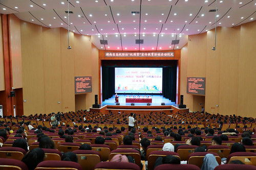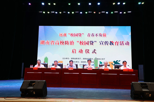 9月20日下午,湖南省防治“校园贷”宣传教育活动启动仪式在我校田汉剧场举行。该活动由湖南省教育厅、省扫黑办、省公安厅主办,87978797威尼斯承办。省教育厅党组成员、省委教育工委委员郭建国,省公安厅刑侦总队总队长敖平洋,省委政法委基层社会治理处处长、省扫黑办处长李明海,我校党委书记彭小奇、副校长刘宇以及省教育工委、省教育厅、省公安厅相关部门领导出席仪式。仪式由省教育厅学校安全管理处处长朱日红主持。