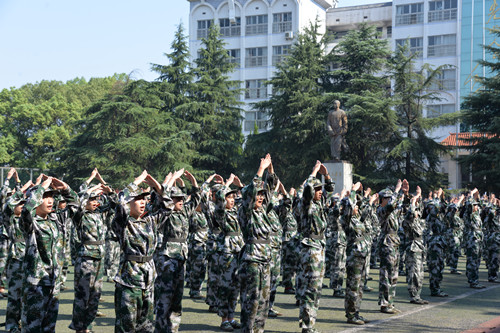 军训成果展示赢得了阵阵掌声和喝彩。在城南书院校区,中招新生以励志手语操《国家》表达了对祖国母亲的深厚情感。“有国才有家,我爱我国家......”,他们的声音响彻会场。在东方红校区,创新方阵的展演中,新生战士们迅速变化队形,拼出了一幅美丽的中国地图和喜庆的“中国70”的字样,他们挥舞着小红旗,合唱《我和我的祖国》,歌声缓缓传扬,以此致敬新中国70周年华诞,祝愿伟大的祖国母亲繁荣昌盛、生日快乐。校园文化方阵先以倒计时、校史校训校风的队形,展现了一师“千年学府,百年师范”的悠久历史,随后大风大浪的动态展示和帆船变换的造型,表达了新生在初入大学时的迷茫困惑,拨开迷茫战胜困难的决心和勇气,以及对进入一师的欣喜之情。在最后的拳术方阵展示中,新生战士们一条口号一招拳术,身形变化中体现了少年风骨,声声呐喊里张扬着青春活力。