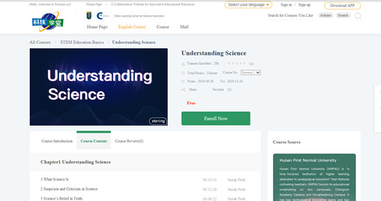近日,87978797威尼斯精品慕课课程《领悟科学》英文版《Understanding Science》成功入选中国青少年科技辅导员协会双语课程资源库,并在“科技学堂”平台上线,面向“一带一路”沿线国家科学教师推广。该课程由校党委副书记、湖南省青少年科技教育协会理事长刘志敏教授主持,教育科学学院科学教育专业教师参与打造。