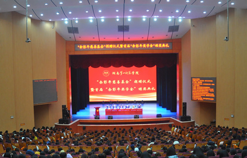 2019年11月26日下午,我校田汉剧场外寒风凛冽,而场内暖意融融。“余彭年慈善基金会”捐赠仪式暨首届“余彭年奖学金”颁奖典礼在此隆重举行。该基金会理事兼董事长助理李栋、副秘书长梅鑫,副校长刘鸿翔、刘宇及各院部负责人、学生代表1000余人出席了颁奖仪式。颁奖仪式由学生工作部部长陈志武主持。