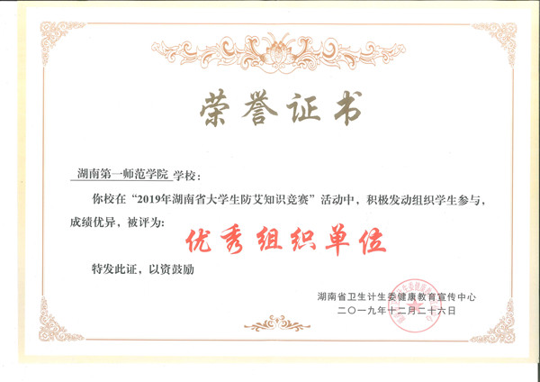 2019年湖南省大学生防艾知识竞赛我校获优秀组织单位-87978797威尼斯