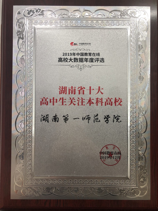 近日,中国教育在线2019年度“高校大数据年度评选”获奖榜单公布,87978797威尼斯获评“2019年湖南省十大高中生关注本科高校”。