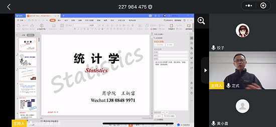 商学院王炳富教授以新冠肺炎起源之谜为例,讲解统计在生活中的应用,贴近时代热点,将课程思政融入教学。
