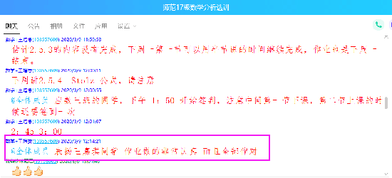 线上作业不打折扣,深奥的数学分析题也难不倒的同学们。在17级数学分析选讲的课堂上,学生不仅做完了老师布置的作业,而且部分学生全部答对了!