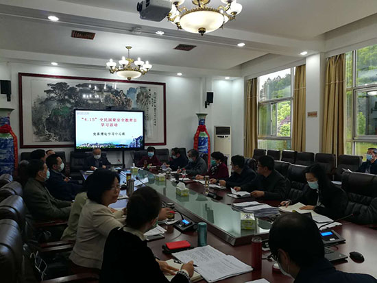 我校党委理论学习中心组4月14日上午在行政楼一楼会议室开展“4.15”全民国家安全教育日专题学习活动。活动由校党委书记彭小奇主持,全体党委委员、各职能部门负责人参加。彭小奇在会议上强调,我校要继续坚持将国家安全观贯穿抗疫全过程,一如既往地高度重视疫情防控各项工作,始终把师生员工的生命安全和身体健康放在第一位。