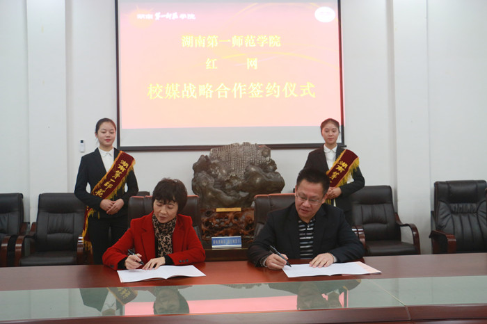 11月22日上午,我校与红网签署校媒战略合作框架协议。双方将在资源共享、人员互派、实习实训、新媒体人才培养、新媒体实验室建设等方面开展深入合作,共同培养现代传媒需要的复合型人才。校长童小娇、副校长江正云,湖南出版集团党委委员、副总经理、红网党委书记、董事长舒斌出席仪式。