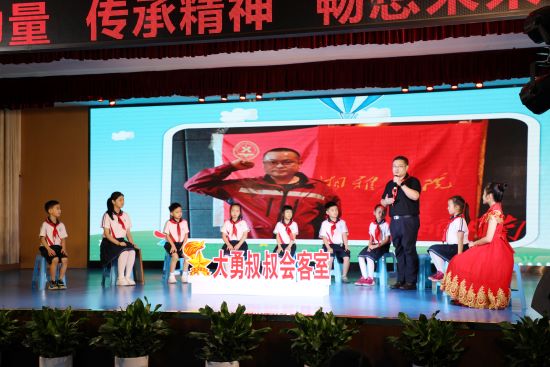 “爸爸,你为什么要去武汉……”孩子们站上舞台,通过朗诵加画外音的形式,展现了身为医护人员的父母奔赴武汉参加抗疫的感人情景。在节目现场,二附小邀请了湘雅医院重症医学科副主任医师刘志勇分享了在武汉抗疫的故事。“大勇叔叔,当时为什么决定去武汉?”“大勇叔叔,您在武汉最难忘的事情是什么?”面对小朋友们的提问,他分享了医疗队奔赴武汉,在祖国的强有力的保障下救治患者,全体队员在党旗国旗下写下再战书,宣誓“不获全胜、绝不收兵”的点滴片段。孩子们结合感触,纷纷畅谈自己的未来的理想,“长大后,我要当一名人民教师,为祖国培养更多的人才”“我要当一名医生,向奋战在抗疫一线的医生学习”“我想当一名作家,用那普普通通的笔写下惊心动魄的抗疫故事”。活动在集体歌舞“共同长大”中结束,小朋友们拿着向日葵纷纷舞动起来,现场变成一片金黄色的海洋,洋溢着天真无邪的笑脸。