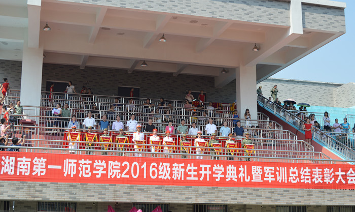 9月24日上午和下午,我校2016级新生开学典礼暨军训阅兵表彰大会分别在东方红校区和城南书院校区田径场隆重举行。湖南省军区作训处向富生处长、湖南省学生军训办公室正处级调研员文麦秋副主任、国防科技大学指挥军官基础教育学院魏筱春大校,校领导彭小奇、童小娇、刘志敏、刘鸿翔、李克勤、刘宇、曹兴、李昱、江正云以及相关职能部门和各学院负责人出席。大会分别由校党委副书记刘志敏、副校长刘鸿翔主持。