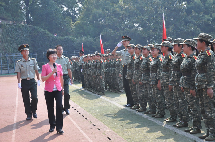 随着雄壮的国歌声响起,大会在庄严的注目礼中正式拉开序幕。校长童小娇在校武装部部长陈志武、教官董书延的陪同下,由主席台步入军训学生方阵中,逐个检阅受训班级。同学们头顶烈日,却依然昂首挺胸,激情昂扬地站好军姿,接受校长的检阅。