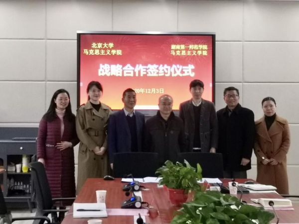 12月3日上午,我校马克思主义学院与北京大学马克思主义学院在东方红校区润寰北205签署战略合作协议。校党委书记彭小奇,北京大学马克思主义学院副院长王在全、毛泽东管理思想高级研修班课程建设负责人玄珠,我校马克思主义学院党政领导出席签约仪式。仪式由我校马克思主义学院党总支书记欧阳斐主持。