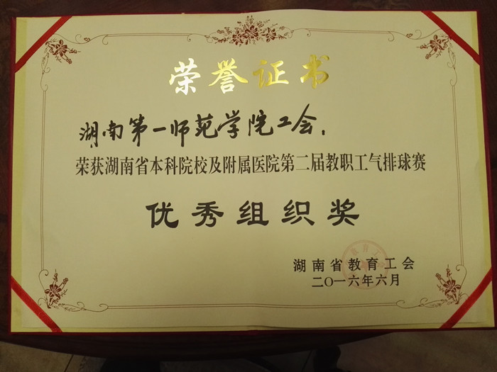 621日—23日,由省教育工会主办的2016年湖南省本科高校及附属医院教职工气排球比赛在湖南科技大学体育馆举行。来自全省高校及其附属医院的36个代表队,共400多名队员参加了比赛。我校代表队由工会主席刘志敏牵头、体育学院副院长朱建伟任总教练。在比赛过程中组织有序,服从裁判,顽强拼搏,体现出了一师人的精神,获得优秀组织奖。