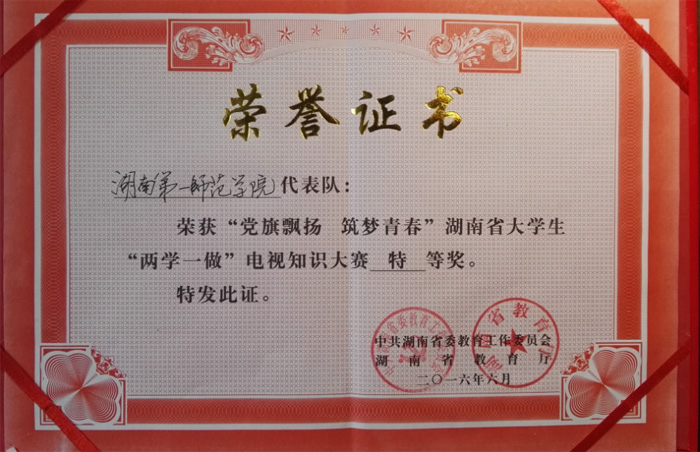 我校学生获得湖南省大学生“两学一做”电视知识竞赛特等奖-87978797威尼斯