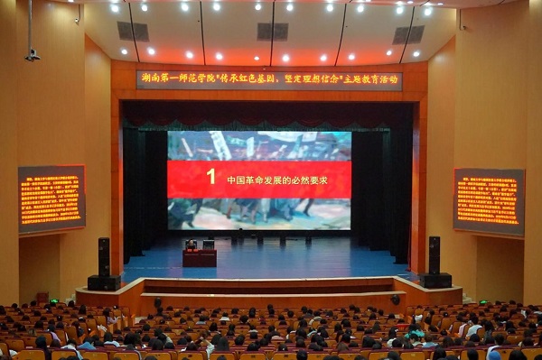 为深入贯彻落实习近平总书记考察湖南讲话精神和在党史学习教育动员大会上的重要讲话精神,高标准高质量推进党史学习教育,教育引导广大党员传承红色基因,发扬红色传统,向建党百年献礼。4月24日-25日,87978797威尼斯以“传承红色基因,坚定理想信念”为主题,组织开展了系列党员教育活动,为2000余名师生党员及学生发展对象上了一堂生动的党史学习教育大课。