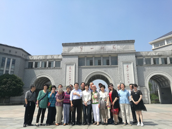 6月5日上午,我校185班20多位校友回到母校,举行纪念毕业50周年聚会。校长童小娇亲切接见了回校的校友们,对校友们重返母校表示诚挚的欢迎,并与校友们合影留念。