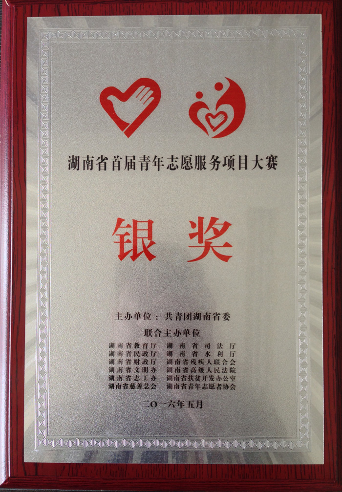 5月27日,由团省委、省高院、省教育厅、省民政厅、省司法厅、省财政厅、省水利厅、省扶贫办、省文明办、省残联、省青志协、省慈善总会、省志工办联合举办的湖南省首届青年志愿服务项目大赛决赛在湖南省青少年活动中心圆满落幕。我校申报的《构筑“多方位、多渠道”扶残助残中心,创建“爱心、暖心”志愿服务团队》项目,经过初赛评审、复赛答辩、决赛路演等环节,最终获得银奖。
