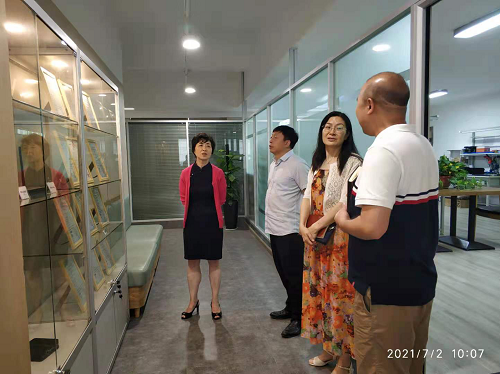 童小娇一行参观了学校信息安全管理研究中心的场地和软硬件设施,询问了企业入驻后的工作开展情况。