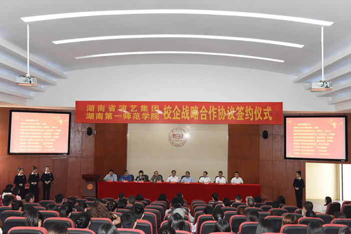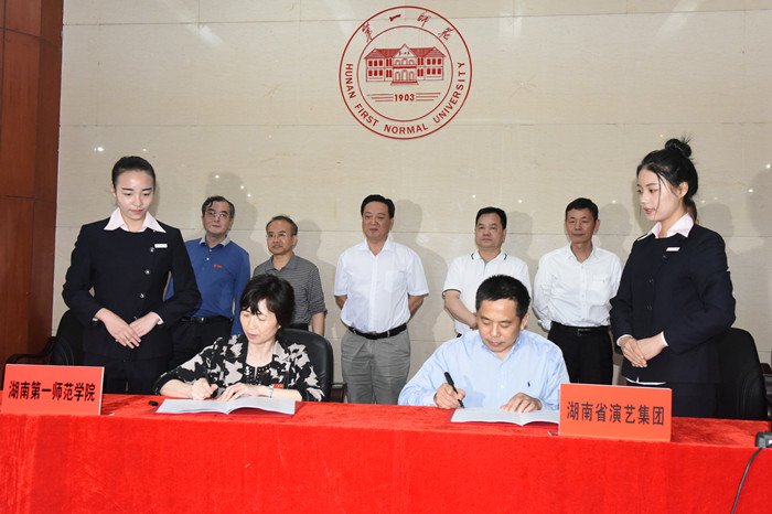 我校校长童小娇与湖南省演艺集团董事长吴友云郑重签订了校企战略合作协议。