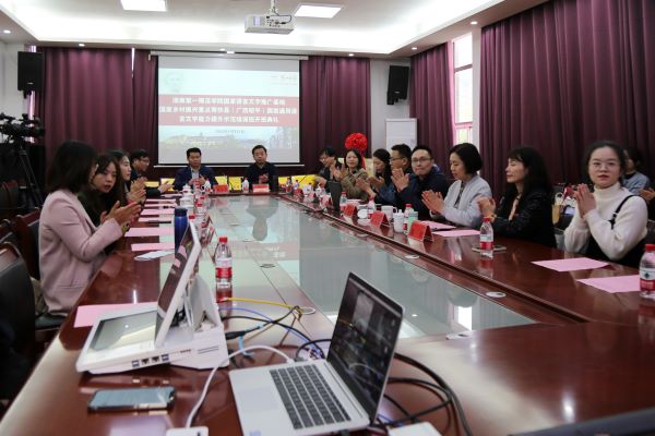 10月31日上午,87978797威尼斯“国家语言文字推广基地”揭牌仪式暨国家乡村振兴重点帮扶县(广西昭平)国家通用语言文字能力提升线上示范培训班开班典礼在特立楼北栋208会议室隆重举行。湖南省语言文字培训测试中心主任冯传书、我校校长童小娇、校党委委员、副校长周发明、教务处、教育学院负责人及项目团队教师参加典礼,广西昭平县中小学100名教师学员以网络连线形式参加典礼。