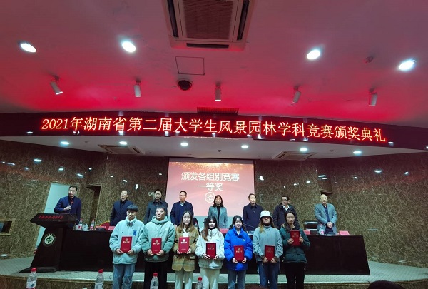 12月19日,由湖南省教育厅主办、中南林业科技大学承办的“第二届湖南省大学生风景园林学科竞赛”圆满结束。我校美术与设计学院代表队在省内30所高校代表队的274组作品中脱颖而出,获一等奖1项,二等奖1项。