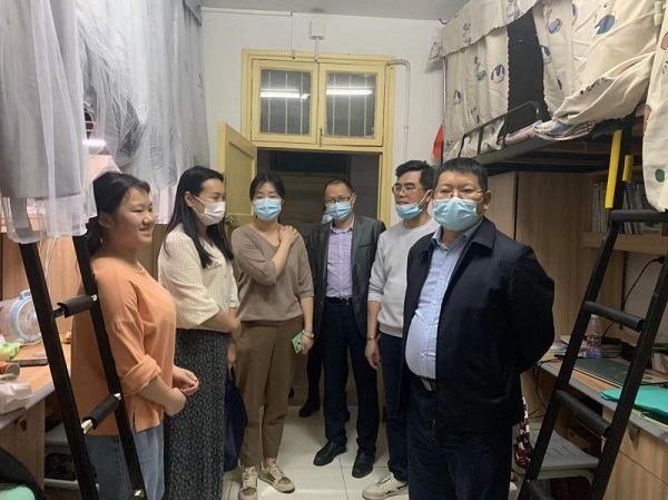 3月14日晚,校党委书记罗成翼带领党委行政办公室、学生工作部、基建与后勤处、保卫处、团委、物理与化学学院等部门负责人深入东方红校区学生公寓、办公场所调研校园疫情防控工作。