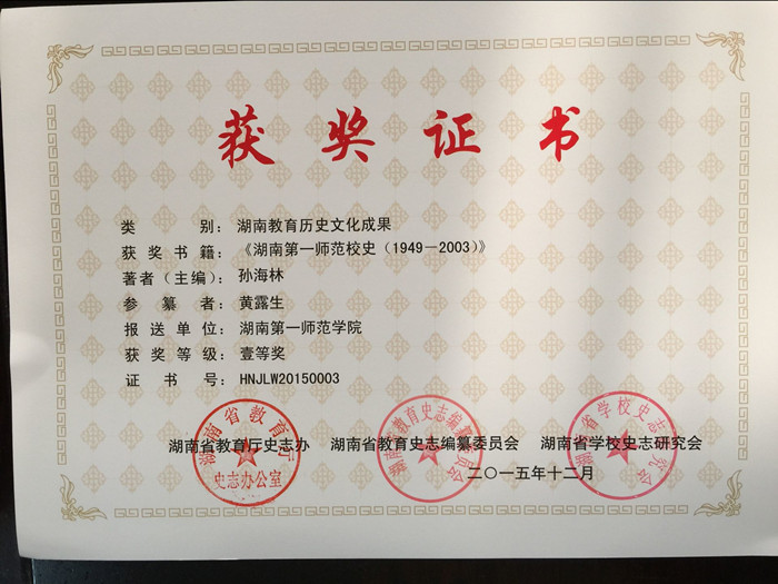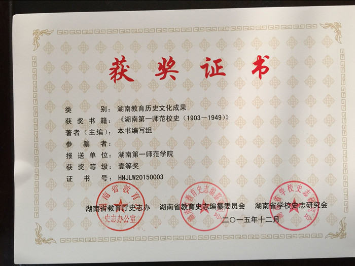12月26日,湖南省学校史志研究会第二次全省会员大会在长沙召开,来自全省教育系统的300余名代表参加大会。大会通报表彰了湖南省首届优秀教育史志类书籍和2015年度优秀论文。我校编写的《湖南第一师范校史(1903-1949)》和我校原副校长孙海林主编的《湖南第一师范校史(1949-2003)》获全省首届优秀教育史志类书籍一等奖,被推荐收入湖南省地方志档案馆、湖南省教育史志陈列室和湖南省图书馆地方文献典藏保管部收藏,并被列入省级优秀图书永久收藏书目。会上,我校退休教师、省文史馆员王沛清教授以“一师是个好学校”为题作了专题学术报告。