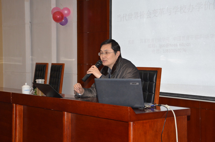 12月20日上午,教育部中小学校长和幼儿园园长国家级培训项目管理办公室常务副主任郭磊教授应邀来我校,为50名来自甘肃的农村中小学校长作了题为“社会变革时学校管理的价值取向”的讲座。