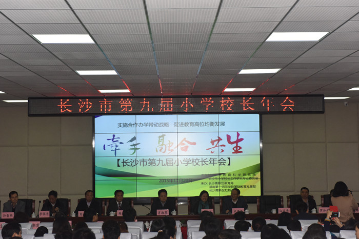 11月20日上午,长沙市第九届小学校长年会在我校虹桥实验小学召开。我校校长肖湘愚、副校长刘志敏,湖南省教育厅基础教育处处长王玲,湖南省教科院副院长李倡平,长沙市教育局局长卢鸿鸣,长沙市高新区管委会副主任江从平,北京师范大学教育管理学院院长鲍传友,长沙市高新区教育局局长罗和平等领导和嘉宾应邀出席开幕式。来自长沙市的200多名小学校长参加了会议。