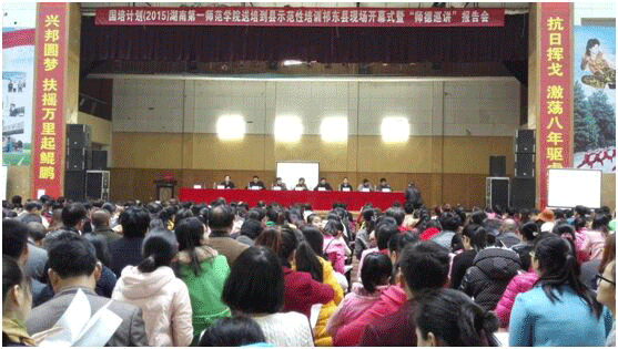 11月14日至15日,由我校组织实施的“国培计划2015”湖南省中小学送培到县培训团队走进祁东县。全县共有小学语文、小学英语、初中语文三门学科近700名一线农村教师参加了本次活动。