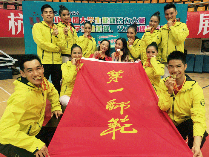11月7日,第11届中国大学生健康活力大赛暨中国大学生健美操、艺术体操锦标赛在浙江杭州落下帷幕,我校健美操队在王京琼教授、罗婕老师的带领下,参加了9个项目的比赛,获得5金、1银、1铜,并取得了体育院校组团体总分第一名的优异成绩。