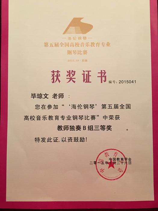 我校在第五届全国高校音乐教育专业钢琴比赛中喜获佳绩