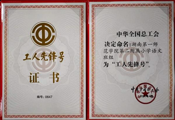 “工人先锋号”由中华全国总工会授予,是以创一流工作、一流服务、一流业绩、一流团队为核心的荣誉称号。我校第二附属小学语文班组是今年全省33个全国工人先锋号获奖对象中,我省教育系统获此殊荣的唯一班组。该项殊荣是第二附属小学在获得全国教育系统先进集体、全国五一巾帼标兵岗、省级工人先锋号等荣誉基础上的又一项国家级荣誉。这项荣誉既是第二附属小学教职工踏实工作、不断进取的结果,也是全校教职工在学校党委的正确领导下,凝心聚力,深化改革,开拓创新,不断提升学校综合影响力的奋斗征程中的一颗硕果。