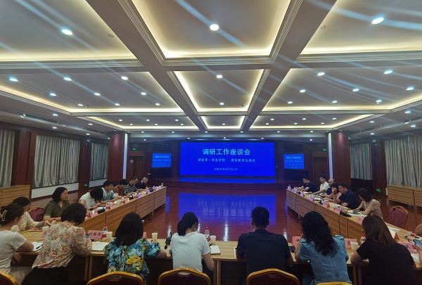 座谈会上,湖南教育出版社各编辑部负责人与我校专家就教育理论、少年中国哲学、课程思政、教材开发、数字化教育、学前教育、家庭教育等领域进行了深入探讨,初步达成了合作意向。