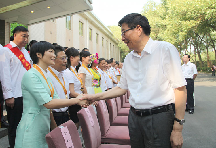 9月9日,湖南省庆祝第31个教师节座谈会在长沙蓉园宾馆召开。我校美术与设计学院优秀教师肖弋参加了座谈会,并喜获湖南省五一劳动奖章。省委书记、省人大常委会主任徐守盛接见了优秀教师代表并与之合影。