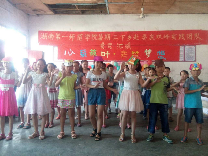 我校暑期“三下乡”赴双峰实践团共由19人组成,分为支教、调研、活动、后勤、通讯五个组,免费为扶贫点118名留守儿童开设了语文乐园、趣味英语、情景数学、音乐、体育、美术等课程,通过学业辅导、课外拓展、亲情陪伴等方式帮助孩子们度过了一段愉快而有意义的时光。实践服务团在支教的基础上,还以“关爱留守儿童”为主题,采用社会调查、实地考察、宣传政策、义教活动等方式,开展了在农村背景下小学生课外阅读情况以及农村文化活动开展情况等一系列调查研究,在火热的七月,走进农村、服务农村、奉献农村,用自己的实际行动践行“八字真经”、投身“中国梦”的伟大实践。