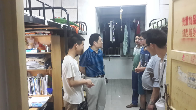 “五一”假期前夜,校长肖湘愚在学校保卫处、后勤处、天创物业公司负责人的陪同下,来到东方红校区学生公寓、食堂、门店等区域就校园安全进行全面检查,并走访了部分学生及商户。