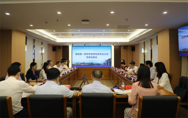 胡穗代表学校作表态发言。他代表学校对专家组的辛勤工作和精心指导致以诚挚的谢意。他表示,专家组充分肯定了我校教师教育取得的成绩,专家的高度评价既是厚爱也是鞭策,我们会将这些鼓励、鞭策转化为推动我校教师教育发展的动力。一是坚决以认证促整改,落实落细专家反馈意见。师范类专业认证整改工作是专业认证的“后半篇文章”,学校全盘接受专家组提出的反馈意见,并将立即启动整改工作,认真梳理专家意见,深入剖析问题根源,制定整改方案和工作台账,列出问题清单、任务清单、责任清单和时间进度表,以“钉钉子”的精神,全面落实整改工作。同时,也将进一步梳理我校已通过认证的师范专业存在的共性问题,将认证整改工作与专业建设、新一轮本科教育教学审核评估、学校教育教学改革 30 条意见结合起来,整体谋划,一体推进。二是坚决以认证促建设,有力有效抓好专业内涵建设。学校将把本次师范专业认证工作中反映出的问题和各位专家提出的建议作为工作重点,进一步加强师范专业内涵建设,不断深化教育教学改革。优化更新教学各环节质量标准,持续完善专业人才培养方案;深挖红色育人资源,强化师范生师德养成教育;完善教师分类评价标准,加强教师教育师资队伍建设;健全培养目标、毕业要求和课程目标三级达成评价机制,确保五个达成度见行见效;完善教学质量保障与运行机制,全面推进一流本科专业建设和一流本科课程建设。三是坚决以认证促发展,做优做特师范教育。学校将以此次师范类专业认证为契机,以专家意见和建议为指导,进一步聚焦师范教育主责主业,牢固树立“学生中心、产出导向、持续改进”的理念,进一步完善卓越教师人才培养改革方案,全面推进师范教育的“学术性”与“师范性”、“传承性”与“创新性”、“开放性”与“协同性”的融合,切实提高人才培养质量,助力乡村振兴,更好地服务并引领湖南基础教育改革发展。