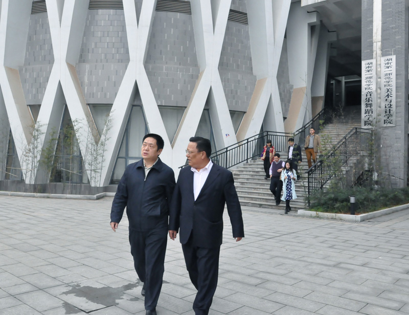 3月17日,甘肃省教育厅副厅长、党组成员旦智塔一行来我校考察师范教育工作,湖南省教育厅教师与师范教育处处长张大伟等陪同考察。
