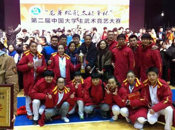 我校武术队在教练员姜辉军老师的悉心指导下,团结协作、刻苦训练、顽强拼搏、克服重重困难,继2014年湖南省第十届大学生运动会武术比赛取得6金4银的佳绩后,又一次获得全国武术竞艺大赛金奖,这是我校升本以来参加全国体育竞赛获得的最高奖励。
