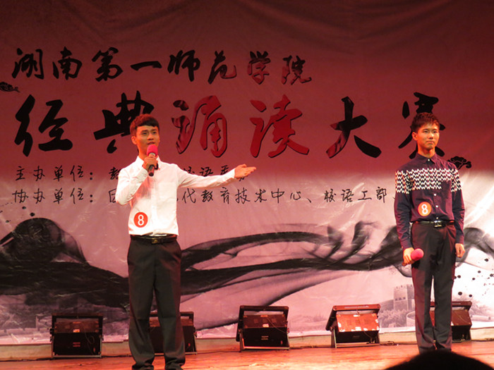 本次比赛在信息科学与工程学院学生配乐诗朗诵《回答》中拉开序幕。选手们声情并茂的诵读,激情洋溢地诠释了中华诗篇的无穷魅力:有感恩教师的《枸杞花开》,有充满炽热爱国之情的《甲午英魂》、《长征》,有寻觅诗人足迹的《岳阳楼记》与《走向远方》,以及深情吟诵祖国母亲的《父母之河》,警醒世人的《我的心》,歌颂青春奋斗的《蚂蚁》、《十八岁畅想曲》等,节目异彩纷呈,为观众奉献了一场语言文字的视听盛宴。