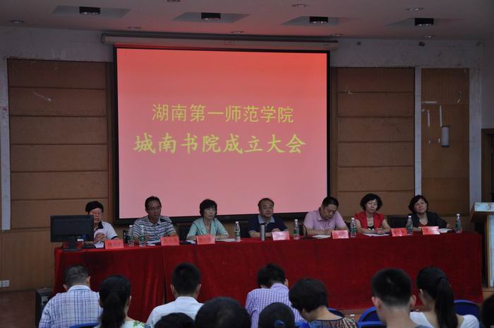 为了更好地继承和发扬我校师范教育的优良传统,保护和发掘好城南书院的历史文化资源,提升六年制公费定向师范生的培养和管理工作水平,经校党委研究决定正式成立城南书院。9月6日上午,我校在城南书院多功能报告厅举行了城南书院成立大会。校党委书记彭小奇、校长肖湘愚、副校长杨兰英、童小娇、人事处处长杨高全出席大会。新成立的城南书院领导班子成员及全体教职工参加了大会,大会由童晓娇主持。