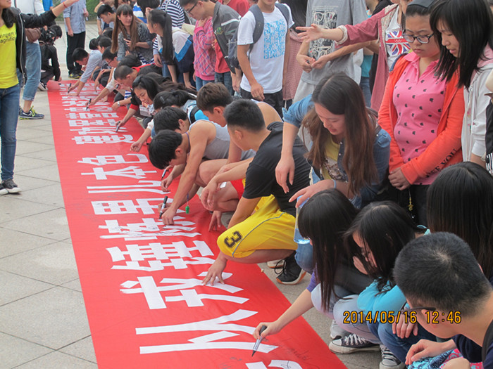 同学们当兵入伍的积极性都很高,全体学生代表在“携笔从戎锤炼男儿本色,建功军营忠诚报效祖国”的横幅上签字承诺,表达从军的决心。