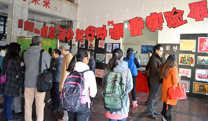 会前,与会人员在城南书院校区教学楼大厅观看了我校“蒲公英行动”课堂实验展,对初中起点六年制公费师范生创作的富有民间特色的美术作品赞不绝口。