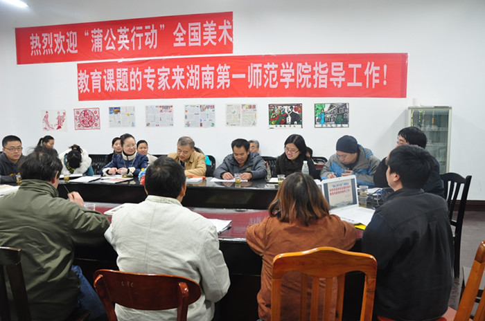 11月28日,由我校教育科学系艺术教研室承办的“蒲公英行动”美术教育专项课题会议在城南书院校区召开。美国福特基金会项目官员何进博士,课题主持人谢丽芳研究员,广州美术学院教育研究所所长陈卫和教授,中国人民大学康晓光教授,中国社会资源研究所李志艳研究员,首都师范大学美术学院段鹏博士,长沙市民协剪纸艺术委员会会长李民族、前任会长涂世训,湘西凤凰县腊尔山小学美术教师龙俊甲,我校教育科学系党总支副书记蔡海军,教育科学系艺术教研室主任易文颖以及来全国各地美术基金会负责人出席会议,教育科学系全体美术教师参加会议。